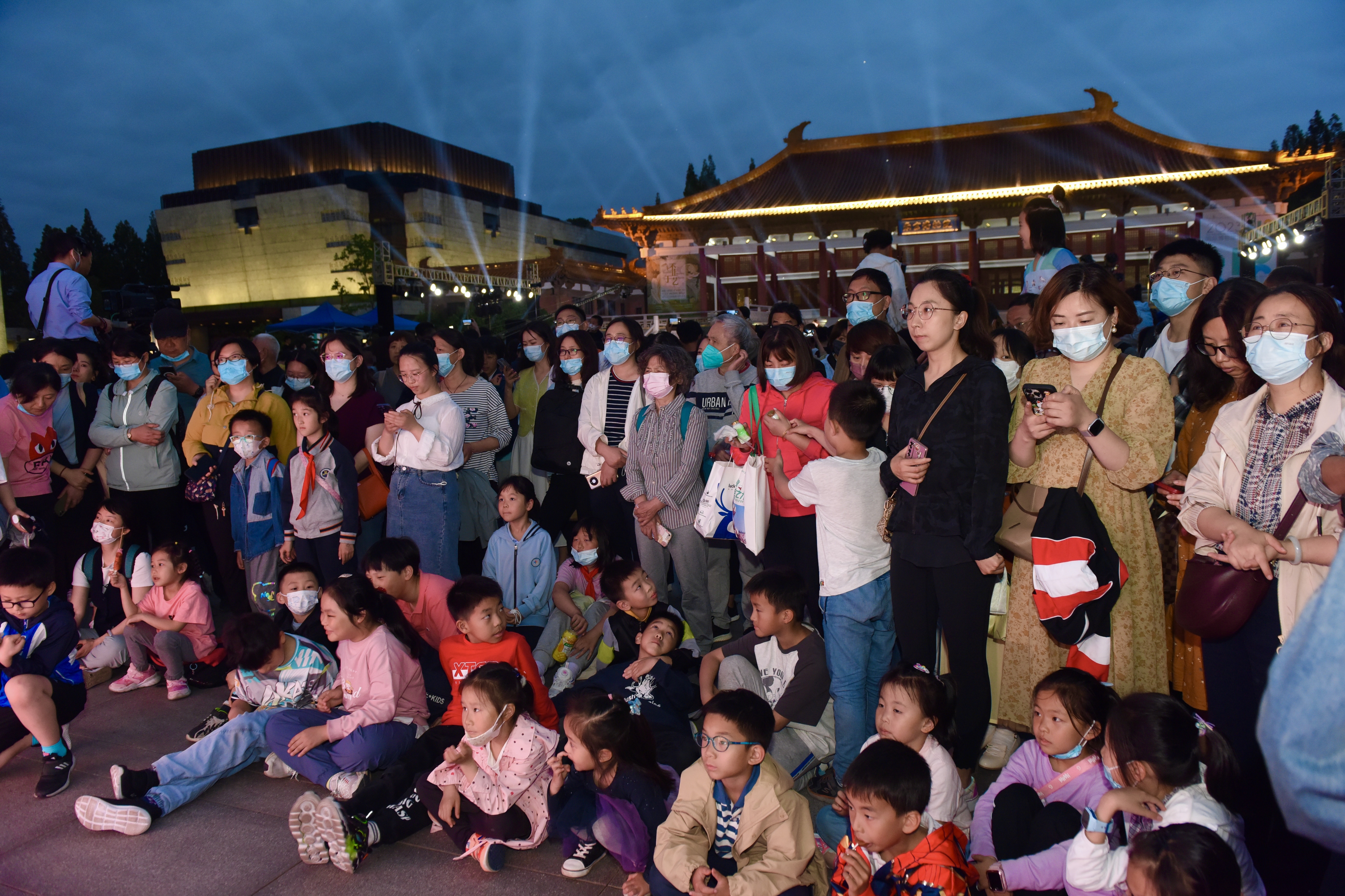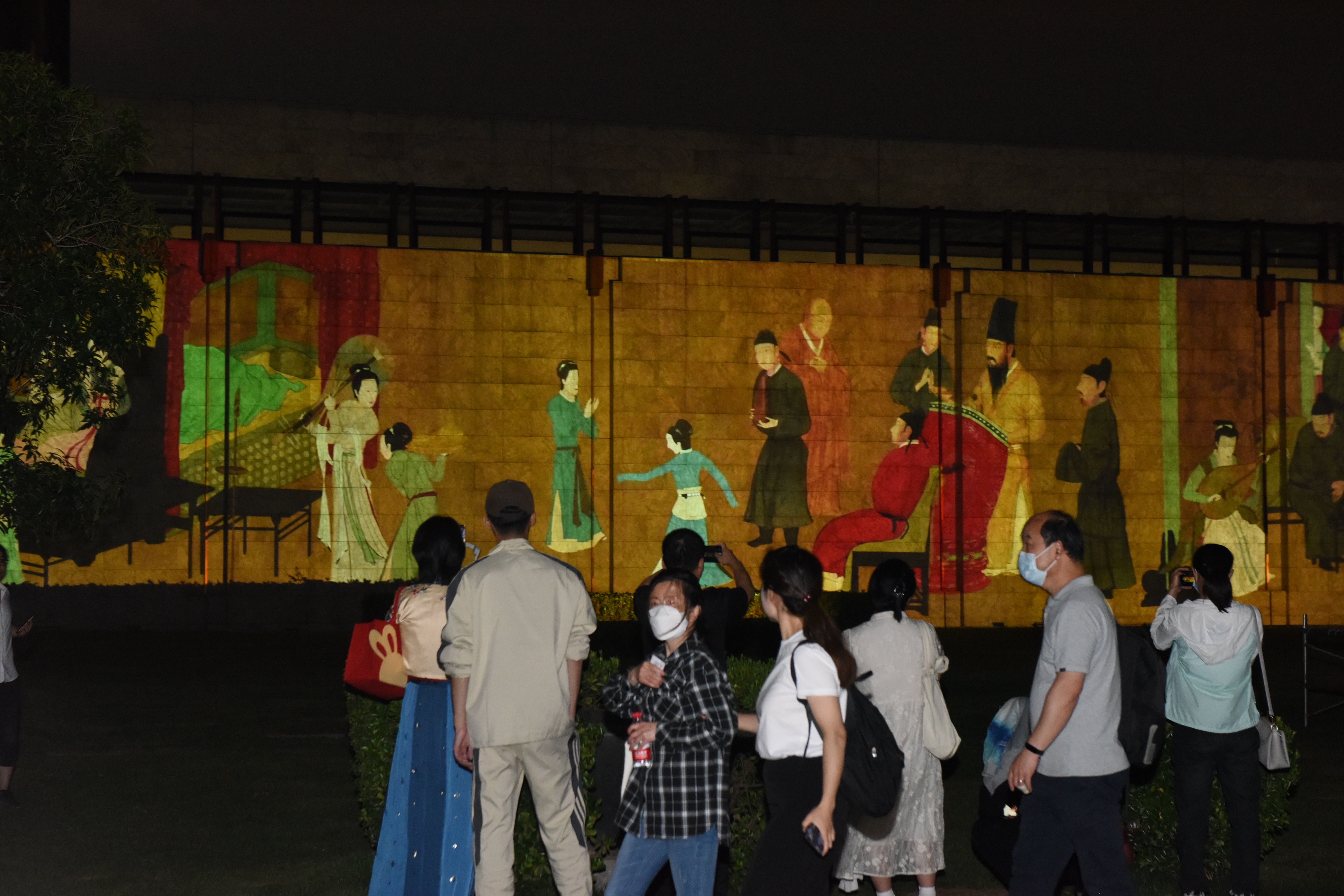 “三,二,一——”晚上7时许,伴着激动人心的倒计时,“博物馆奇妙夜”璀璨开启。南博历史馆的金瓦飞檐下,霎时涌动起人头攒动的欢乐海洋。“我本楚狂人,凤歌笑孔丘。手持绿玉杖,朝别黄鹤楼……”诗声琅琅,笛声悠扬,自信开阔的盛唐精神从静止的文物与诗篇中走出,流淌在博物馆与观众惊喜相遇的夜晚中。