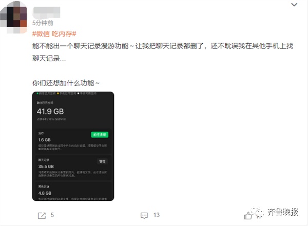 阿凌的碎碎念 :占我十几个g的内存,很多消息又不能删,占这么多内存,公司内部app上万条的消息文件都只几十m!