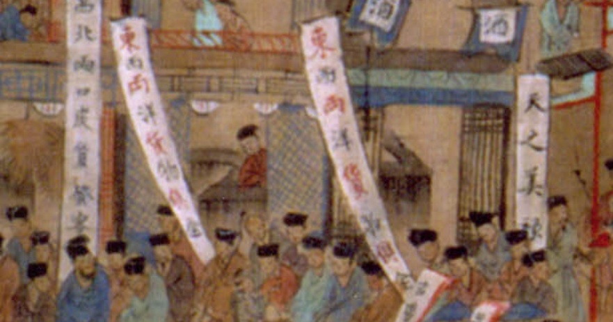 《南都繁会图》被称为明代的《清明上河图》,绘有店牌招幌上百种、各种人物1000多个,马渭源认为,反映的是正德、嘉靖年间南京市场街头的实景。这幅绘画作品极具写实风格,提供了明代南京丰富的历史信息。其中“东西两洋货物俱全”招幌,则隐约透露出明代中外贸易的发达程度。这个招幌说明政府已允许经营通过民间贸易得来的东西洋货物。因此,虽处于海禁时期,明朝的海外贸易仍然存在。此次南海沉船发现的瓷器,是官方贸易还是民间走私还有待进一步考证。