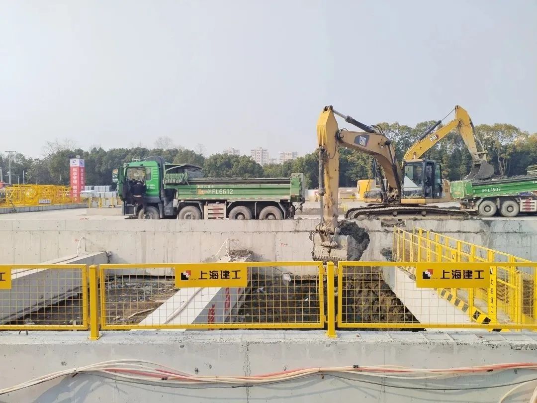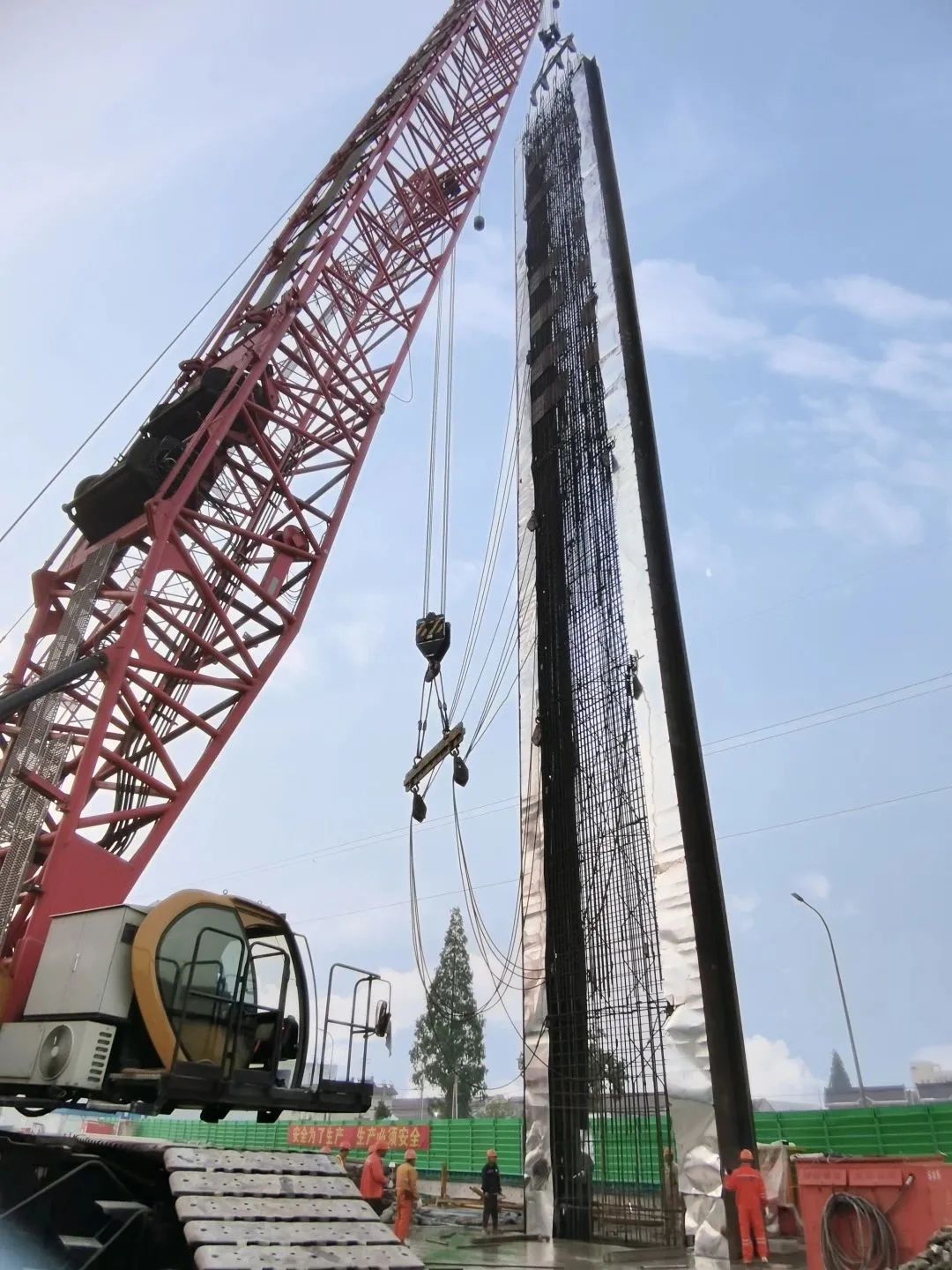金园五路站位于上海市嘉定区曹安公路与乐秀路交叉口南侧,沿曹安公路东西向布置,建成后将与轨道交通14号线实现换乘。车站标准段基坑开挖深度26.4米,端头井基坑开挖深度28.7至29.3米,为地下三层双柱三跨岛式站台车站,围护结构采用厚度1.2米、深度59至60米的地下连续墙施工,共有地下连续墙116幅。金园五路站地下施工环境复杂,在上海申铁的统筹组织下,项目团队合理进行施工筹划,采取有效措施进行超深地下连续墙施工,确保周边环境安全。