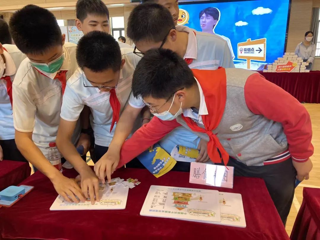主办方通过开展膳食宝塔拼图、知识问答大转盘等参与性互动游戏,发放控烟知识资料和宣传品,让学生在参与中获得更多的健康知识。