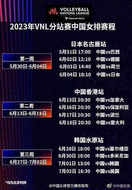 2023年世界女排联赛于5月30日拉开序幕,依然采取三周分站赛和一站总决赛的赛制,在日本名古屋站后,中国女排还将先后参加中国香港站和韩国水原站的比赛,而总决赛将于7月13日至17日在美国阿灵顿举行。期待着中国女排姑娘们能够再接再厉,在以赛代练不断打磨阵容的同时,收获更好的成绩!