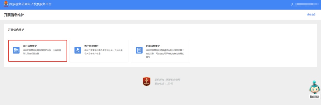 相关路径:【我要办税】-【开票业务】-【开票信息维护】-【项目信息维护】。