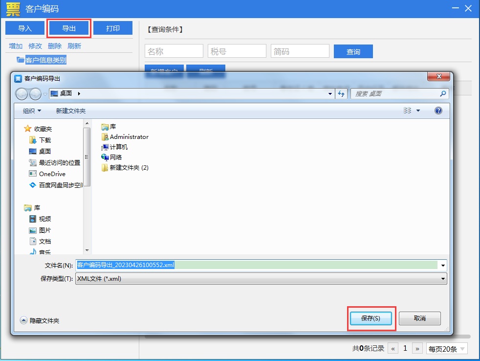 点击【导出】,选择非系统盘进行保存即可,保存后客户编码的数据就已经备份好了。