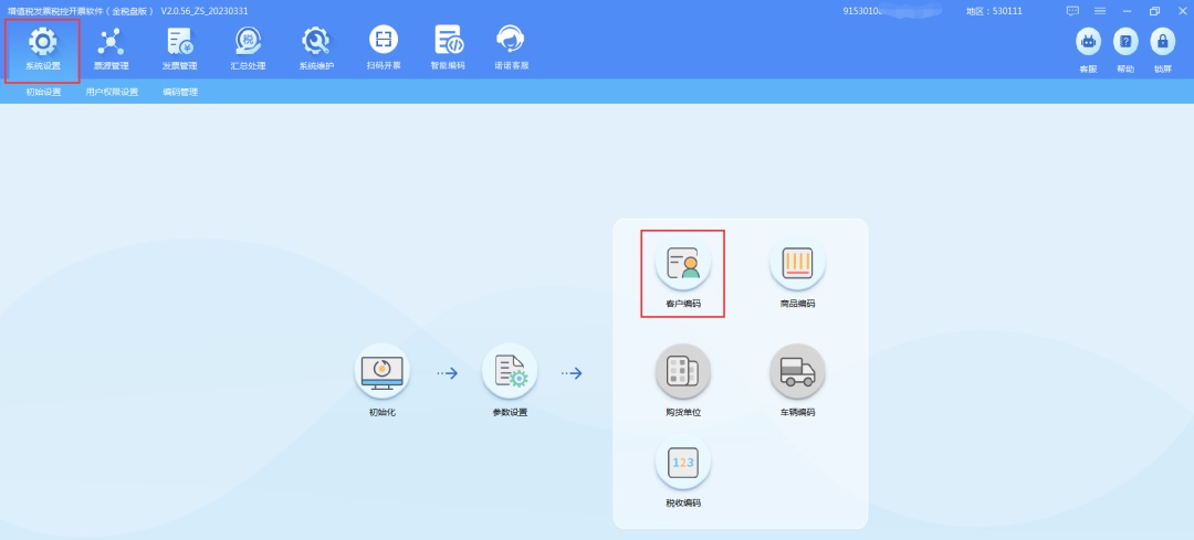 登录开票软件后,点击【系统设置】—【客户编码】。