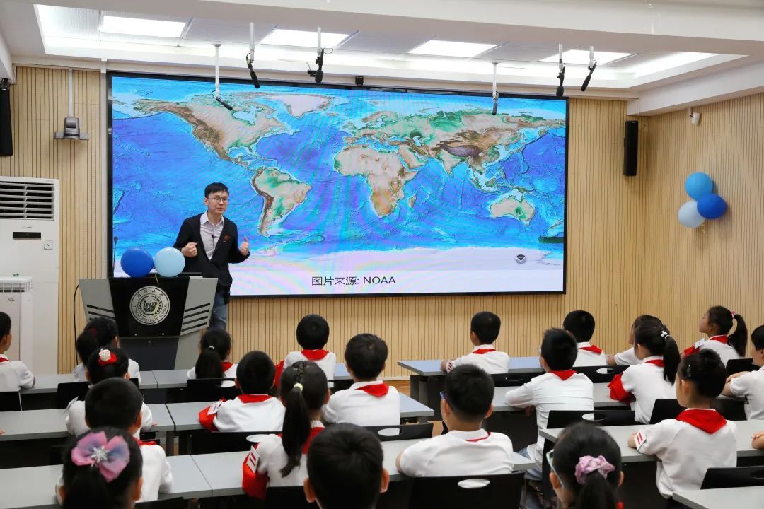 从全球海洋占地面积、人类已知深海情况、海洋生物、到海底勘探技术、海洋资源,颜余真从多方面对同学们展开海洋科普,大家也都听得入神。最后抛出的问题也激发了同学们的好奇心,原来海洋不仅仅是地球独有,在宇宙其他星球上也很有可能存在,但这一谜底有待同学们们长大后去揭晓。
