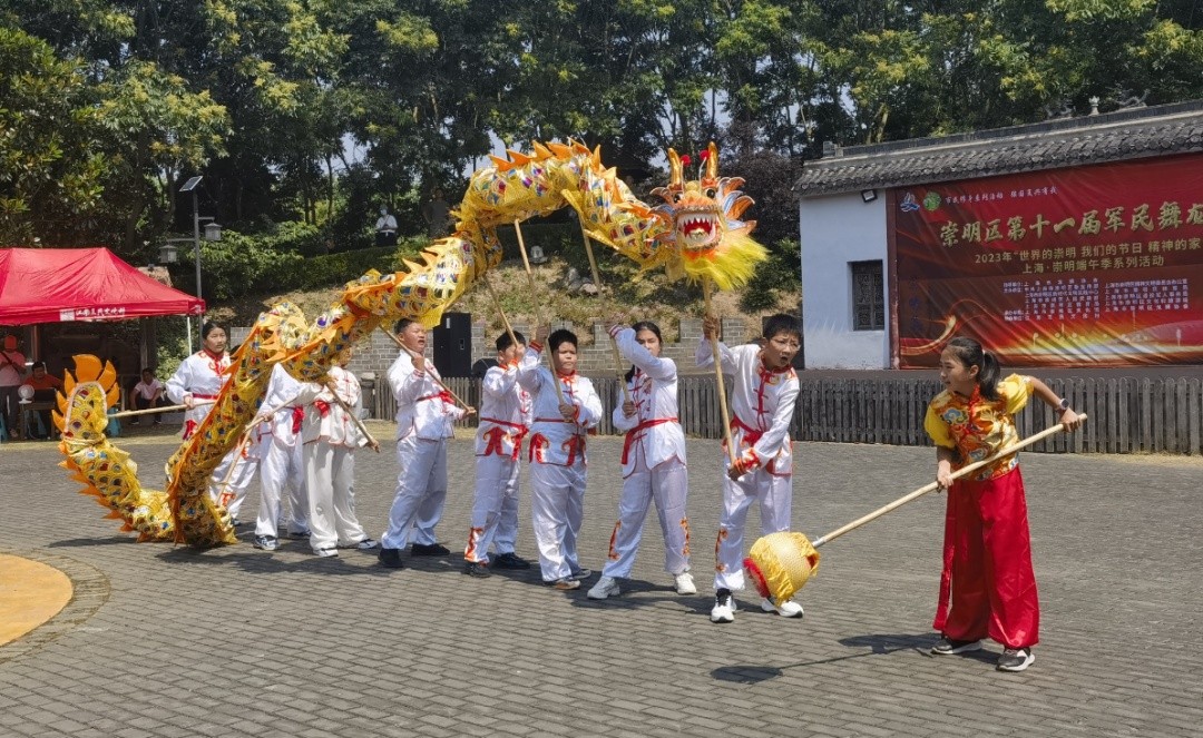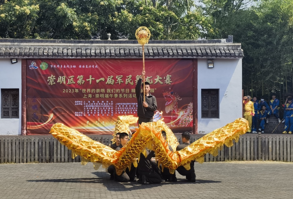 端午乘祥风,龙舞腾盛世。今天(6月10日),2023年“世界的崇明 我们的节日 精神的家园”上海·崇明端午季系列活动——第十一届军民舞龙大赛在江南三民文化村举行。舞龙大赛作为崇明端午季的首场活动,吸引了来自驻崇部队、乡镇以及中小学的30支队伍、300名选手参加。