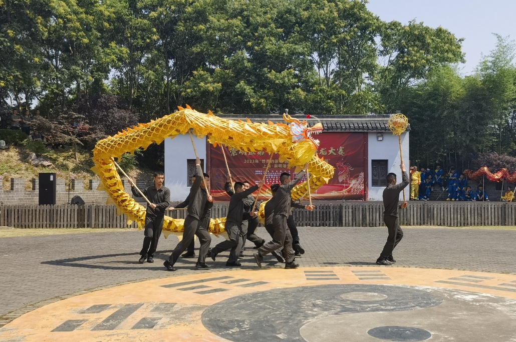 赛场上,伴随着铿锵有力的音乐,参赛选手们手持巨龙轮番上阵,在他们的操纵下,巨龙或腾跃、或滚动、或盘起、或穿插,时而在追逐宝珠的过程中头尾摆动,时而入海破浪飞腾跳跃,变成了活跃灵动的金龙。
