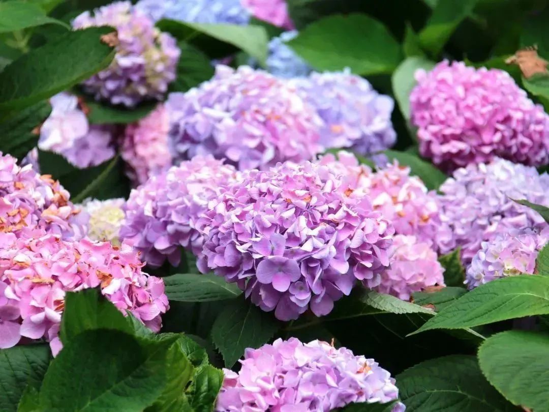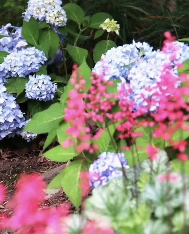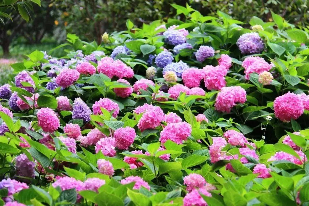 土壤酸碱度对绣球花的花色影响极大,绣球在酸性土壤中开蓝色花,在碱性土壤中则花开殷红。各个公园利用绣球花的这一特性,通过在不同地块中调配不同土壤酸碱度的方式,使得园中绣球姹紫嫣红、姿色万千。
