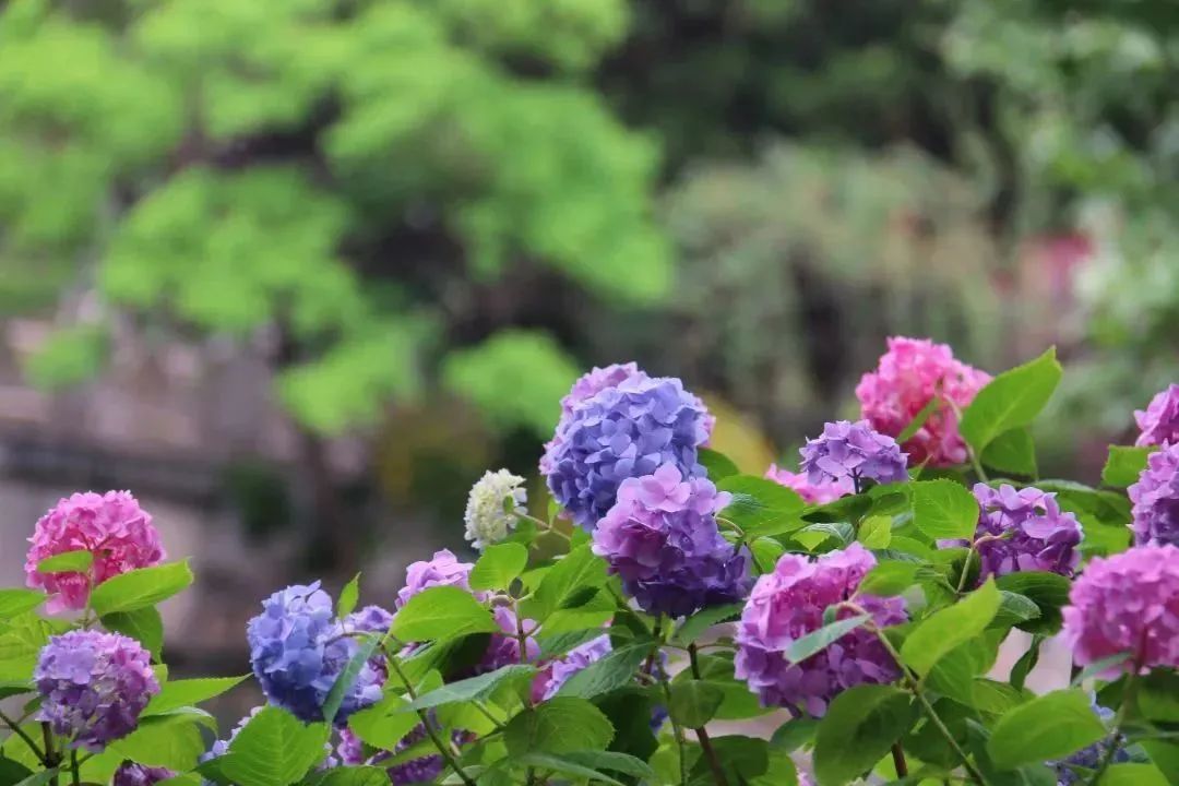 高枝带雨压雕栏,一蒂千花白玉团。绣球花形态喜人、色泽各异,是上海夏日舞台中最令人瞩目的角色。静安区多座公园迎来了绣球花的登场。竞相绽放的绣球花点缀出夏日的绚丽多彩。
