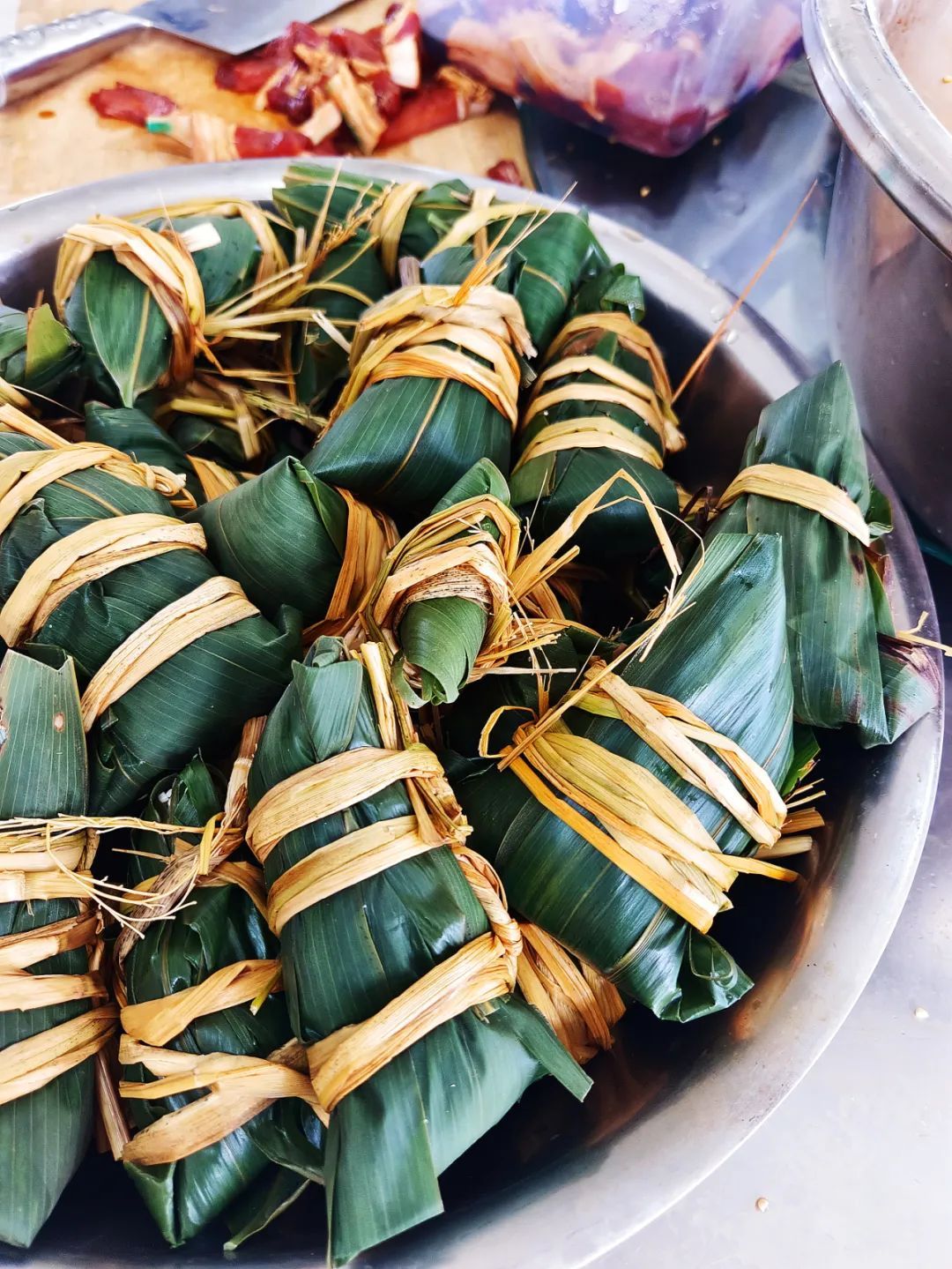 长长的龙舟粽、端正的四角粽、创意满满的香囊粽……一会儿工夫,不锈钢盆里,五花八门的粽子就堆成了“小山”。“我们北方人都是吃红枣甜粽的,想不到这边人都爱吃肉粽,看着也蛮香的。”一名来自北方的消防员接连包了好几个红枣粽子,却满心期待能吃到咸口肉粽。