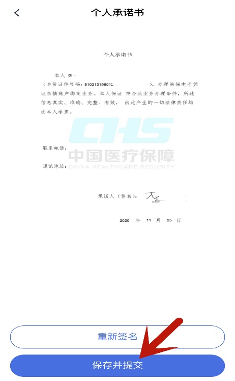 进入完成绘制签名的“个人承诺书”界面,点击“保存并提交”。