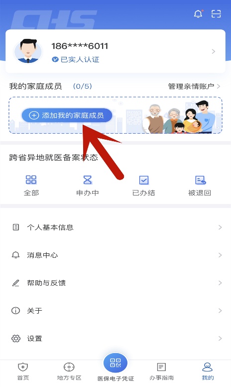 进入“我的”界面,点击“添加我的家庭成员”。
