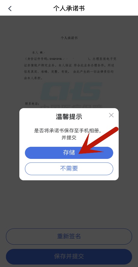 进入“个人承诺书生成”界面,点击“从手机相册选择”,从您的手机相册里选取完成绘制签名的“个人承诺书”。