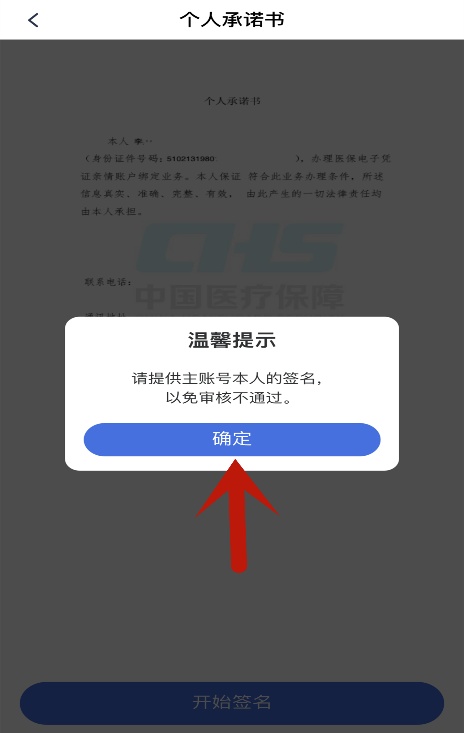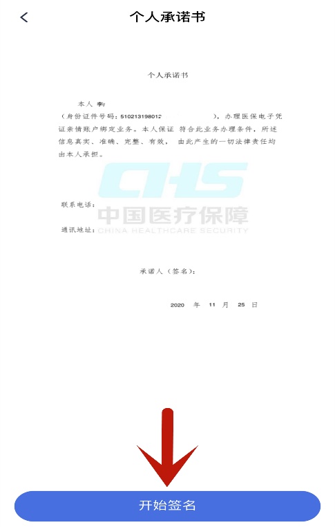 进入“个人承诺书”界面,点击“开始签名”。