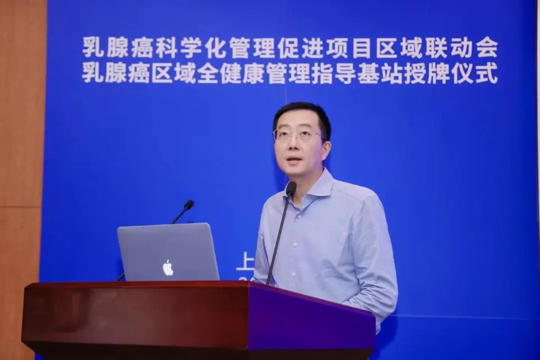 田院长接着介绍,本次“赋能专科建设 共创健康中国——乳腺癌科学化管理促进项目”指导单位是国家卫健委医政司,医院乳腺外科作为上海市医学重点专科、全国首批十佳保乳示范中心,基于专科优势,联合黄浦区十家社区卫生服务中心开展乳腺癌社区健康教育指导基站建设,围绕社区人群防癌科普教育、基层医务人员早筛业务培训、乳腺肿瘤患者康复随访等三大核心板块,通过专业知识技能培训、乳腺健康教育活动、乳腺肿瘤mdt初筛患者绿色通道等方式开展工作,提高乳腺癌规范化诊疗水平。项目整体目标是促进乳腺癌规范诊疗,针对高危人群提升早筛早诊早治意识,早期乳腺癌患者建立多学科规范化诊疗体系,晚期乳腺癌患者以延长患者生命、提升生活质量为目标,努力推动我国乳腺癌治疗临床实践水平的不断提升,为更多乳腺癌患者带来整体和长期生存获益,助力健康中国行动目标的实现。