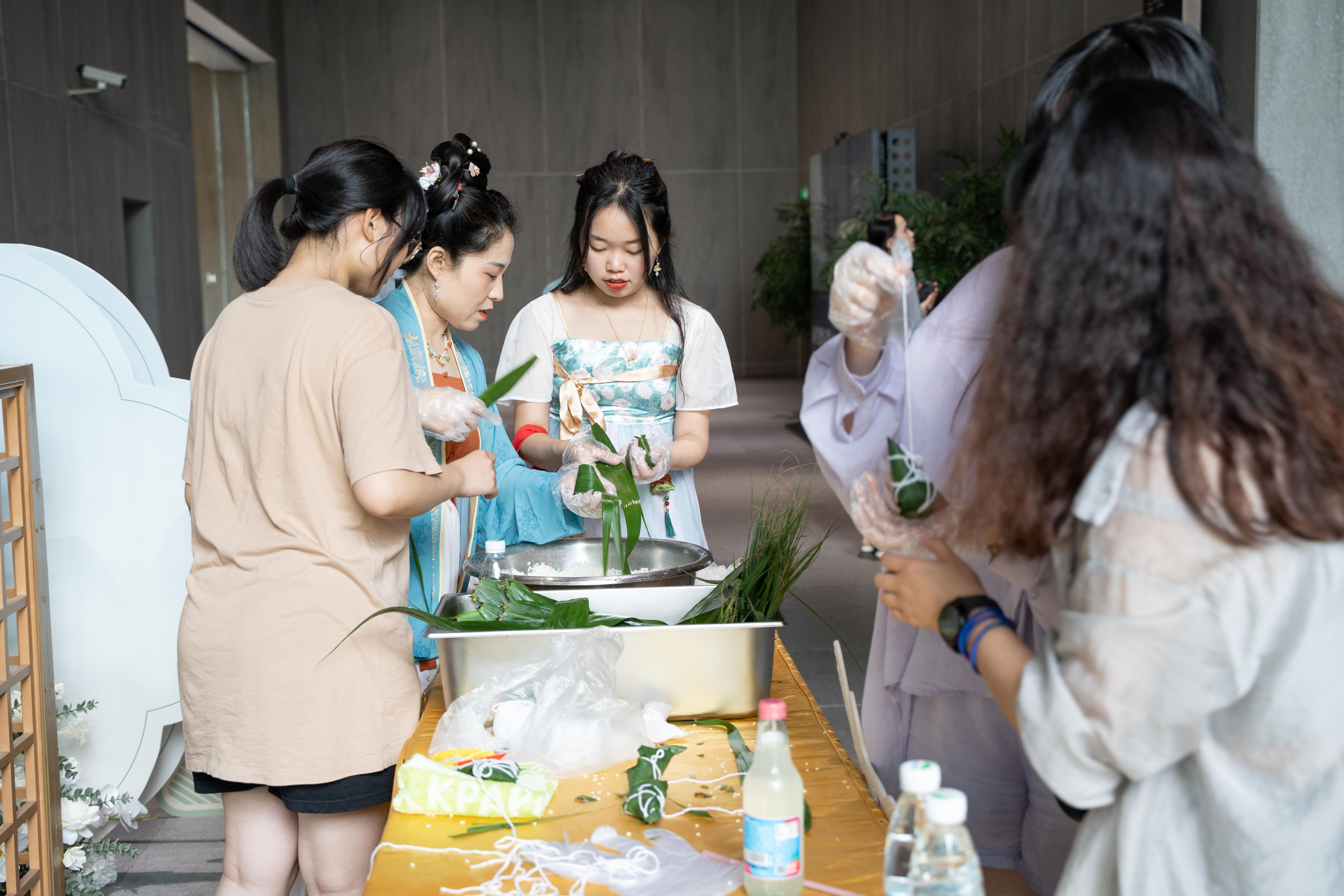 赛龙舟也是端午节的主要民俗活动之一,但赛龙舟对环境及专业性的要求较高,大多数人无法体验。为了让更多人感受端午习俗,景区利用科技手段,为游客们呈现了一场别开生面的电子龙舟赛。走进恩剧场,用手机进入特定的程序,即可与大家在线上展开龙舟竞技,优胜选手还有机会获得定制奖品。另外,别具特色的舞龙舞狮表演、端午节定制“粽叶舞”、古装人物巡游都将在大报恩寺遗址景区端午节期间上演。