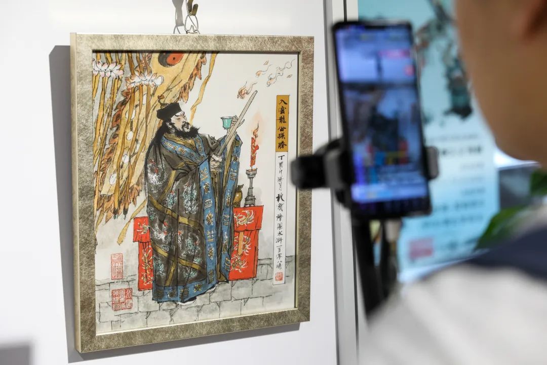 展览上,著名画家杨秋宝创作的“水浒108将”画像惟妙惟肖、栩栩如生,吸引了过往市民的目光。