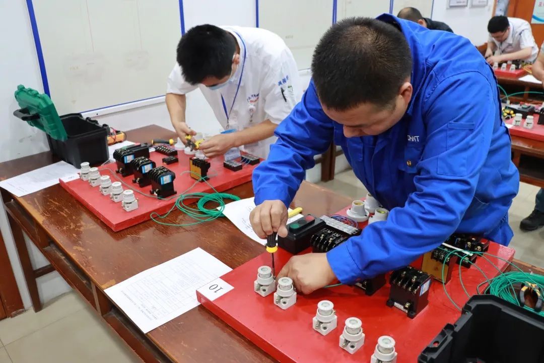 本次竞赛分为“高压日常维护:10千伏变压器检修(技术措施)”和“低压日常维护:电动机正反转控制回路接线(控制回路接线)”两个项目。整个赛程,选手们全神贯注、争分夺秒,凭借敏捷的思维与娴熟的技艺顺利完成了所有任务。经过激烈比拼,来自达丰(上海)电脑有限公司、上海依视路光学有限公司的选手分获高压组和低压组一等奖。