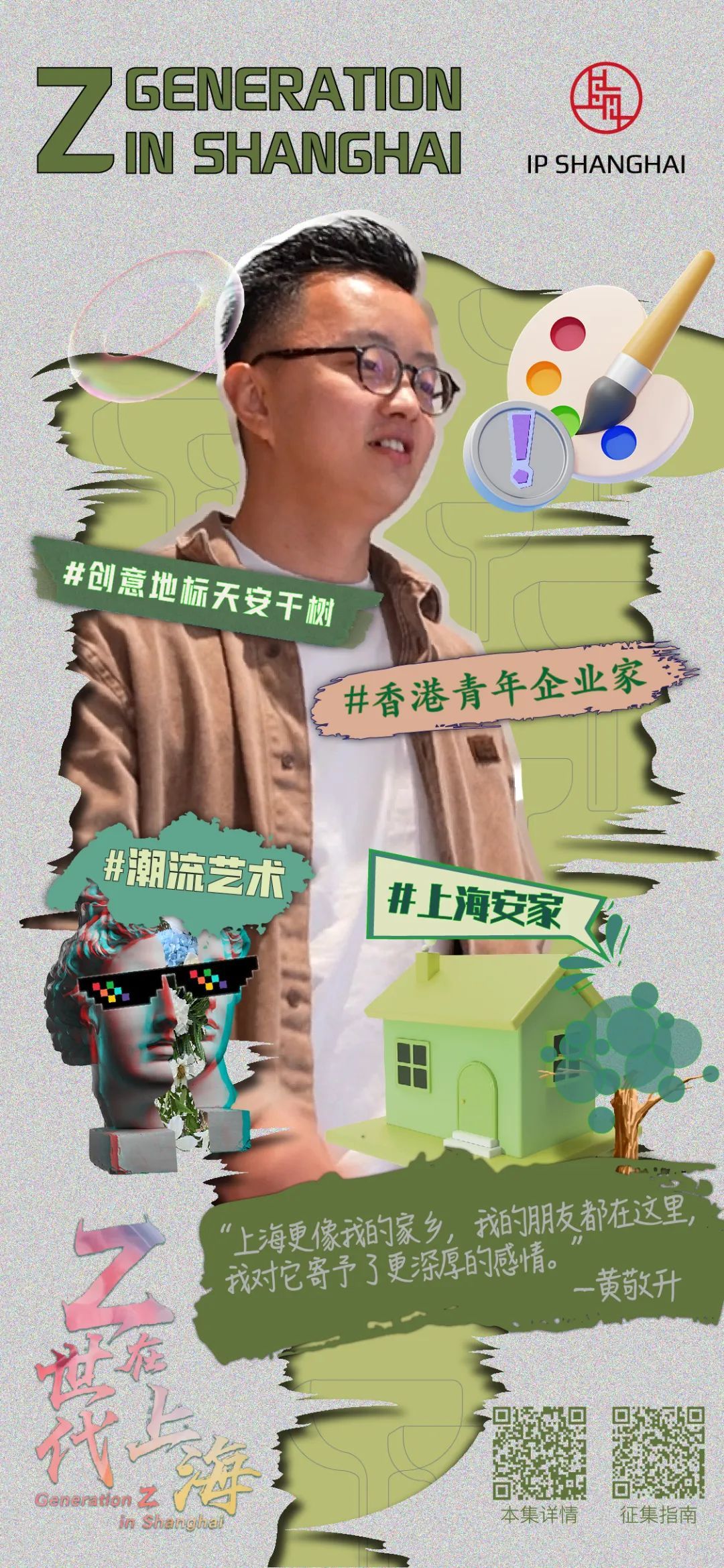 而更多时候,黄敬升停下脚步,看着这几栋老建筑,想起了自己和上海的缘分。黄敬升是香港人,但从小在上海长大,家里长辈也很鼓励他在上海发展,“其实,我一直在上海和香港之间来回跑,但是更多时间待在上海,读书、工作。从个人发展经历来说,我其实更会把自己定义为一个上海人,而不是香港人。”加之,他童年生活的地方就是今天新天地所在区域,在他看来,“那里很好地体现了中西文化的结合,商场本身也经常有新玩法。在那里走一走,我会觉得很舒服。”
