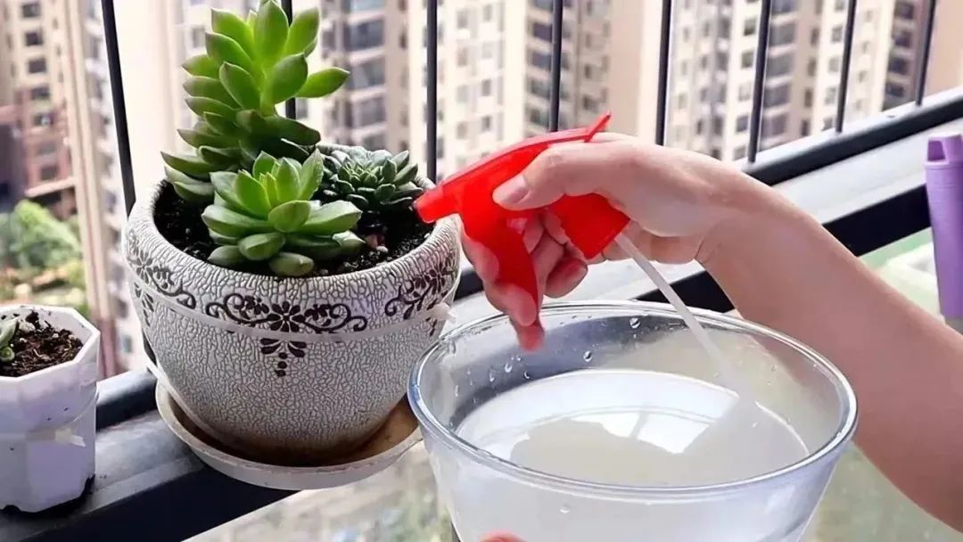 将淘米水倒进瓶子,放几片橘子皮进去,密封静置一周后,兑入1:5的清水即可浇灌。
