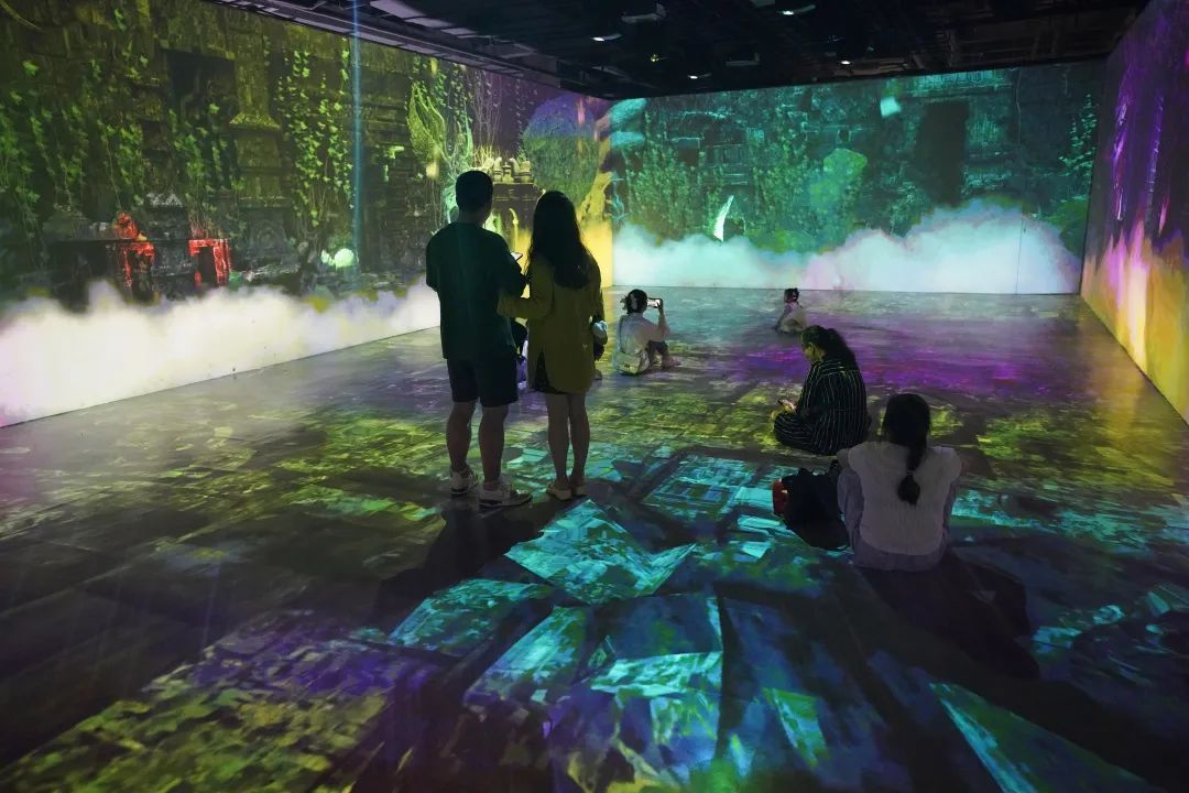 以数字光影技术,生动展现《山海经》中的神话故事。日前,松江企业上海领路人科技股份有限公司与奇创旅游集团共同打造的“探秘山海经·大型沉浸艺术展”在虹桥天地试运营,吸引了众多游客。