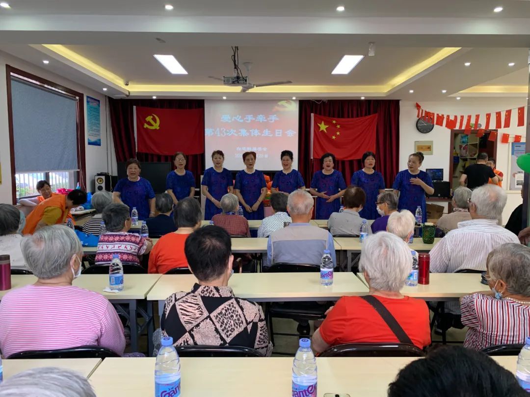 生日会上,志愿者们展示了自己的才艺,有手指操、拍手歌、唱红歌、上海说唱、沪剧联唱等内容。随后,社区工作人员、志愿者们为寿星们唱起生日歌,祝寿星们生日快乐,大家一起许愿,吹灭生日蜡烛。
