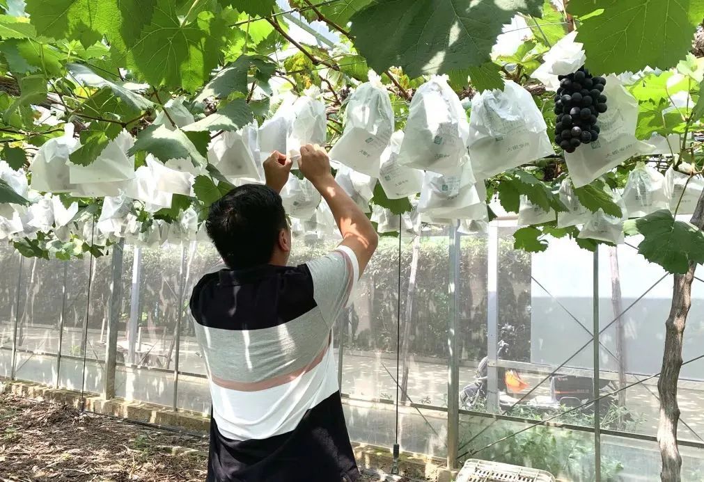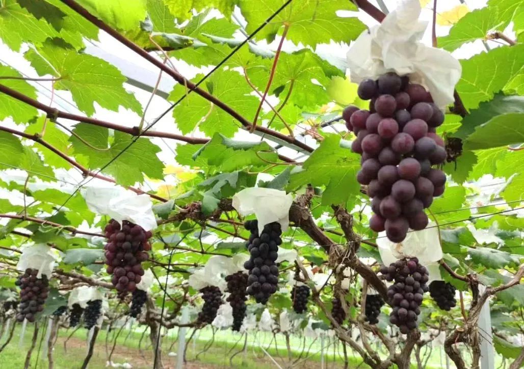 据合作社负责人介绍,目前侨嘉葡萄园已成熟的早熟品种为“夏黑”“喜乐”,一年一季,当前正是最佳赏味期,预计亩产可达2000斤。