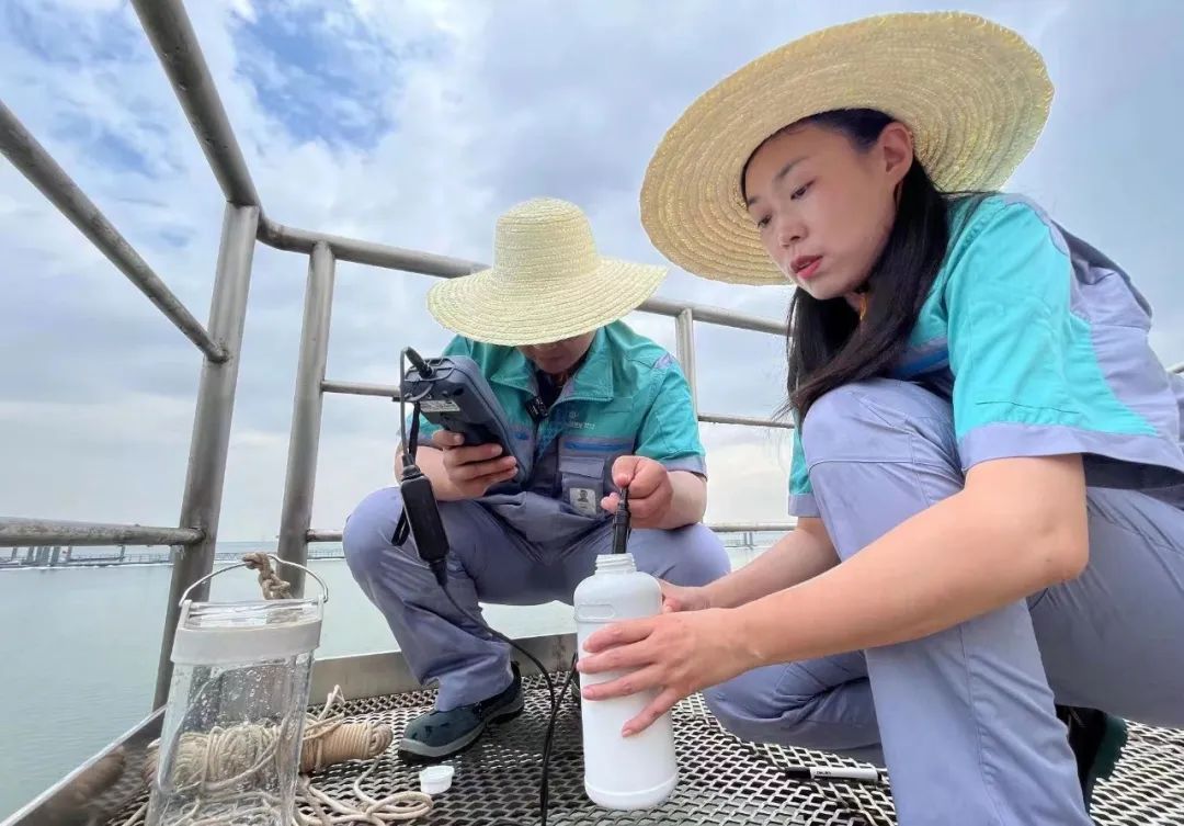 只见他来到取样平台上,匀速放下了一个采样器,在采集了一份水样后,便迅速拿起仪器开始检测并记录。