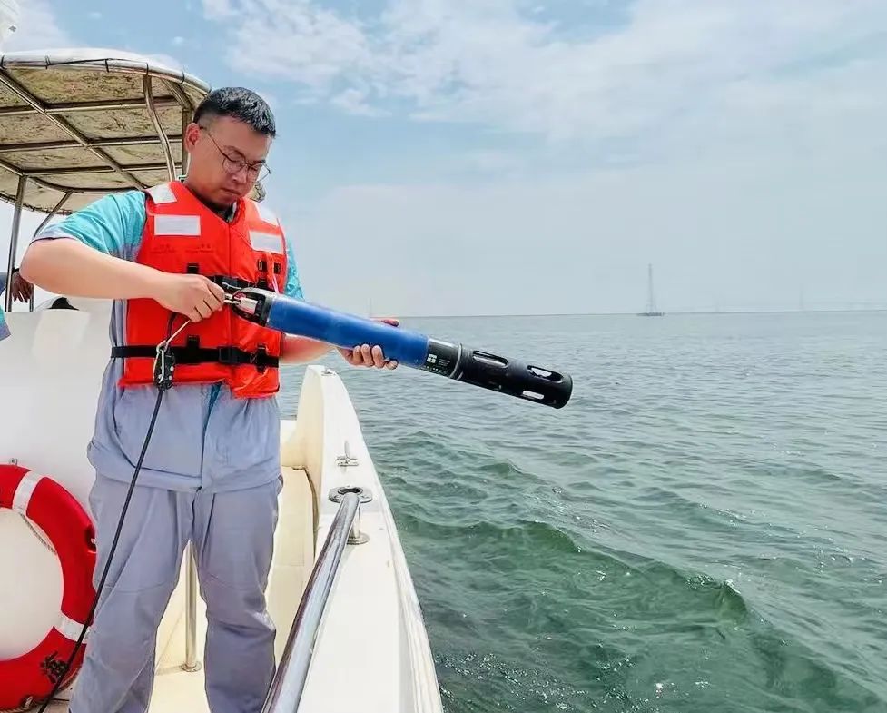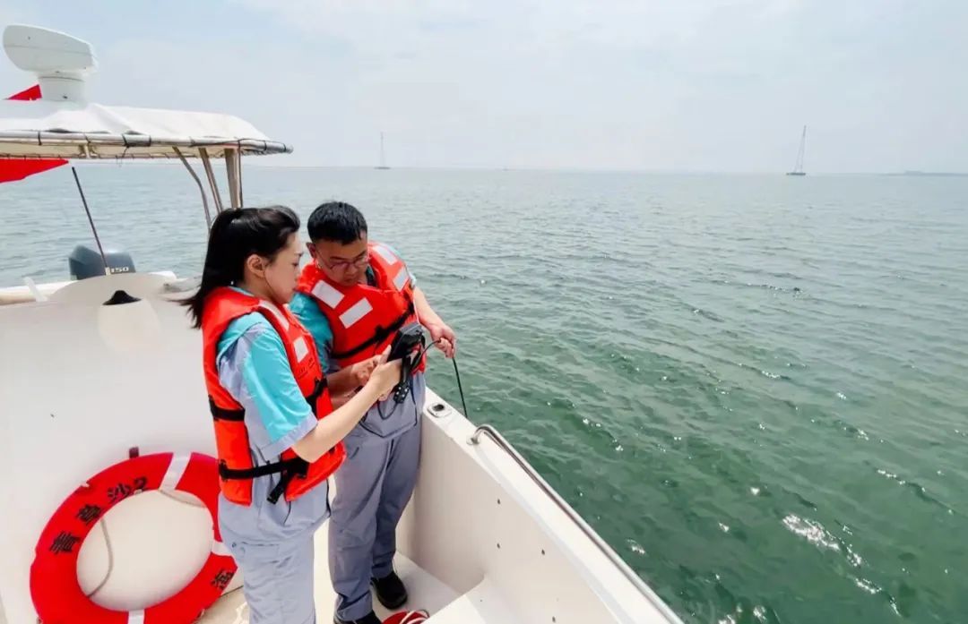 水面作业时,除了上浮筒外,赵一帆还需要和同事们一起完成船测,这也是水质检测中重要的一环。
