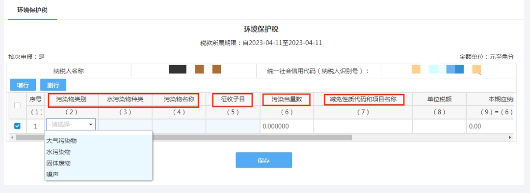 1.在主表中新增/修改/删除环境保护税税源基础信息