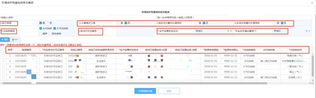 以大气、水污染基础信息采集表的填报为例:
