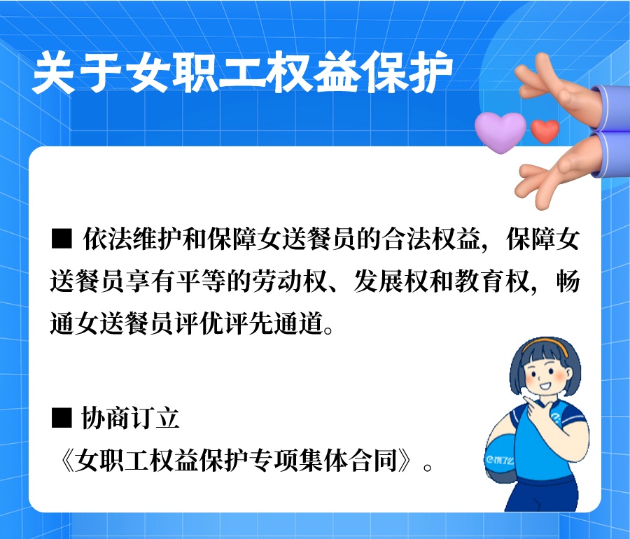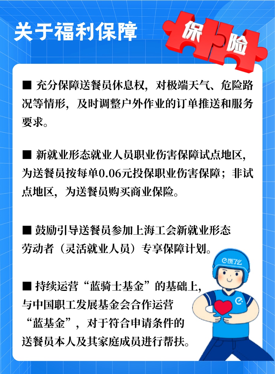 一年前,市总工会联合市商务委及普陀区总工会,推动“饿了么”平台与“蓝骑士”代表开展全网集体协商,明确了全网骑手劳动报酬、劳动保护、福利保障、奖惩制度、技能提升、女骑手权益保护和民主权利等多项议题及初步措施。