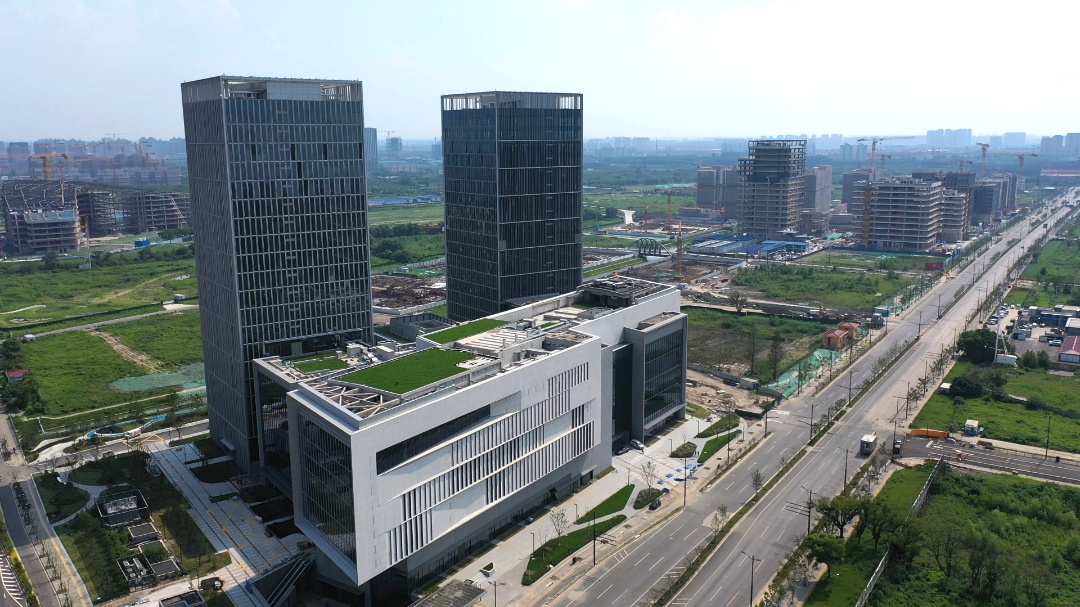 地铁上盖的“双子塔”是南大智慧城的首发项目之一,也是南大数智中心的载体,项目占地33亩,包含两幢百米办公塔楼、一幢多层独栋建筑以及商业裙楼,是南大智慧城首个集商业、办公为一体的综合体项目。这里正在努力打造集智慧商业、生态办公和社交休闲为一体的综合型城市空间,营造未来科创之城的视觉享受。
