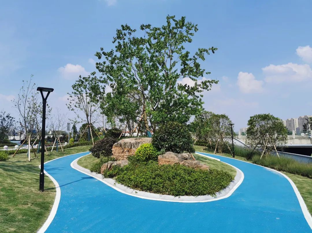 南大“双子塔”的配套绿化主要分为两个区域。一个是沿祁连山路西侧区域,这里的绿化带将“双子塔”建筑与车水马龙的祁连山路分开来,进一步优化了“双子塔”区域的生态环境。另一处主要是利用“双子塔”的南侧空间,沿蜿蜒曲折的南大河构建成小桥流水的园林式绿地,并与建设中的南大中央公园隔河相望。“双子塔”的配套绿化面积达5549平方米,整体上是一种“以小桥流水串联起来的多样空间”。