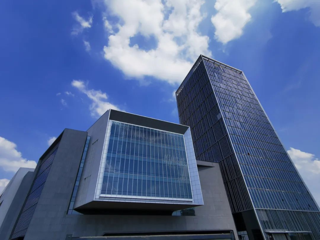 新建成的南大“双子塔”矗立在祁连山路和南大路的西南象限,静若处子,威武雄壮。蓝天白云下,“双子塔”建筑蔚蓝色的外玻璃幕墙熠熠生辉,大楼地面处则簇拥在园林一般精致美观的绿化带中,让南大智慧城这座首发项目一问世便不同凡响。