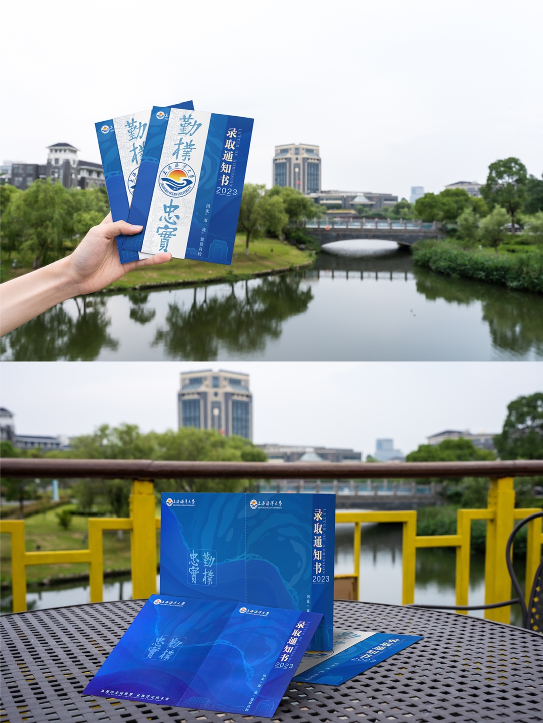 上海海洋大学录取通知书以“水”的纹理作为主要设计元素。配色以天蓝色为主,辅以暖色搭配,突出主题。水滴纹与海潮线的组合,使细节更加丰富。大小上保留了以往通知书的尺寸,中间有齿线,可一分为二,并且新增了腰封的设计,满足设计上的美观,也增加了开启通知书的仪式感。