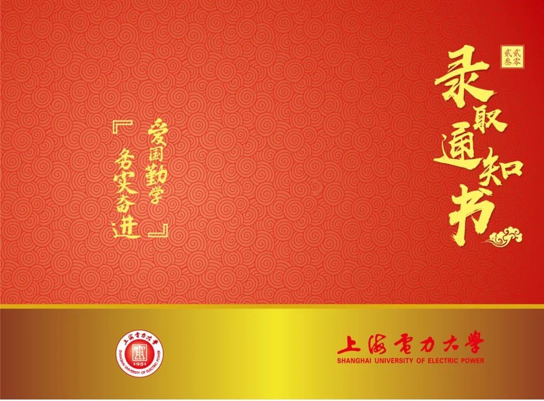 上海电力大学生录取通知书中金色和红色的碰撞,传递着喜悦与自豪;学校校徽呈现在通知书上,素雅清丽的色彩下,勾勒出临港校区的校园标志性建筑,气势恢宏。