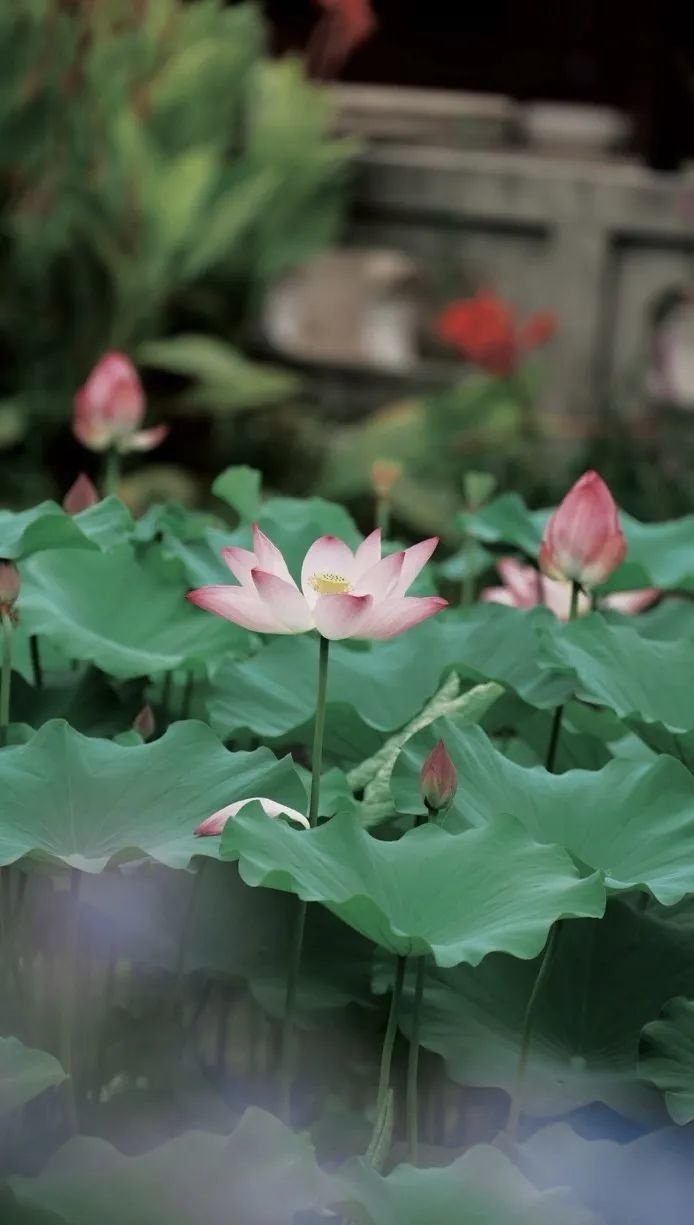 在位于石化街道大堤路的荟萃园内,荷花池内的荷花宛如一个个“豆蔻少女”般俏皮可爱。幽静的环境、弯曲的亭廊,微风轻拂,荷花摇曳的身姿更衬得园内古色古香,别有韵味。除了赏荷,在这里休闲小憩也是个不错的选择。