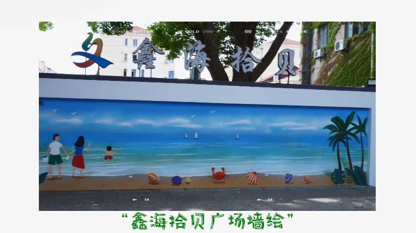 绘制成契合“鑫海拾贝”寓意的海滩,