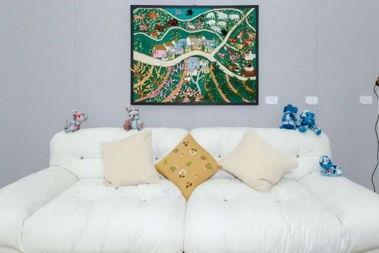 “这个抱枕感觉我也能做一个放到家里沙发上。”看到利用家中的各种废旧布料做成抱枕、餐巾纸盒,很多观展者都跃跃欲试,打算回去自己做手工。