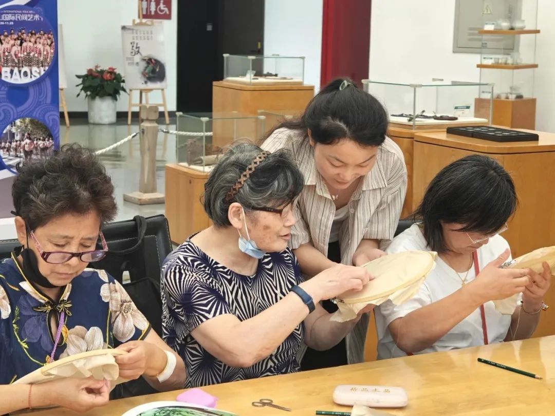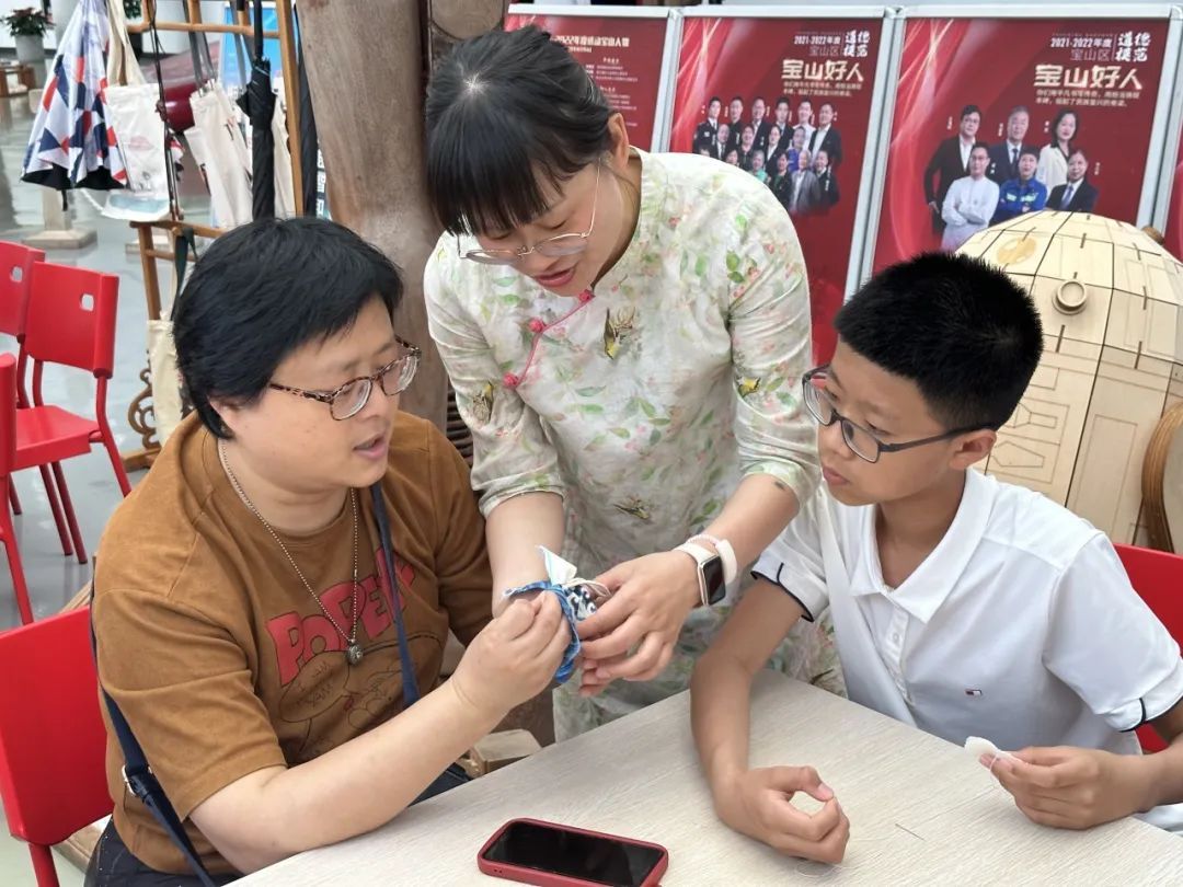 为了让更多市民朋友亲身感受手作的美好,展览期间每个周末,计划来看展的市民都可以报名参与手作公教活动。符合端午节庆氛围的香囊制作、带来夏日清凉的手绘团扇、传统非遗顾绣、融入红色文化的衍纸艺术,各类手作体验既丰富了周末生活,也让市民打开了美育新世界。