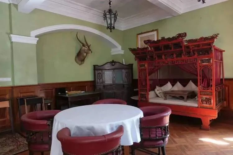 s女士口中所说的车厢,指的是餐厅花园里停放的老式火车车厢,分别为慈禧车厢和宋庆龄车厢。