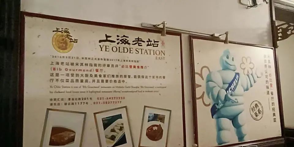 在餐厅进门口的墙上,记者发现了米其林推荐榜单,显示上海老站曾经连续多年进入米其林推荐榜单,在2022年12月,上海老站仍然进入《2023上海米其林指南》榜单,成为24家必比登推介餐厅之一。