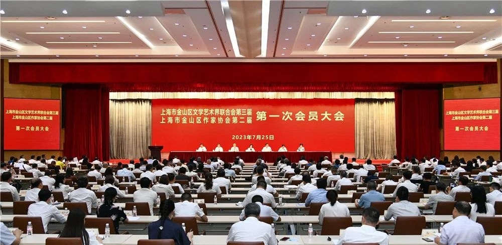 7月25日下午,上海市金山区文学艺术界联合会第三届第一次会员大会,上海市金山区作家协会第二届第一次会员大会在金山区会议中心胜利召开。金山区文学艺术界人士齐聚一堂,共商金山文艺繁荣发展大计,共谱金山文艺繁荣崭新篇章。
