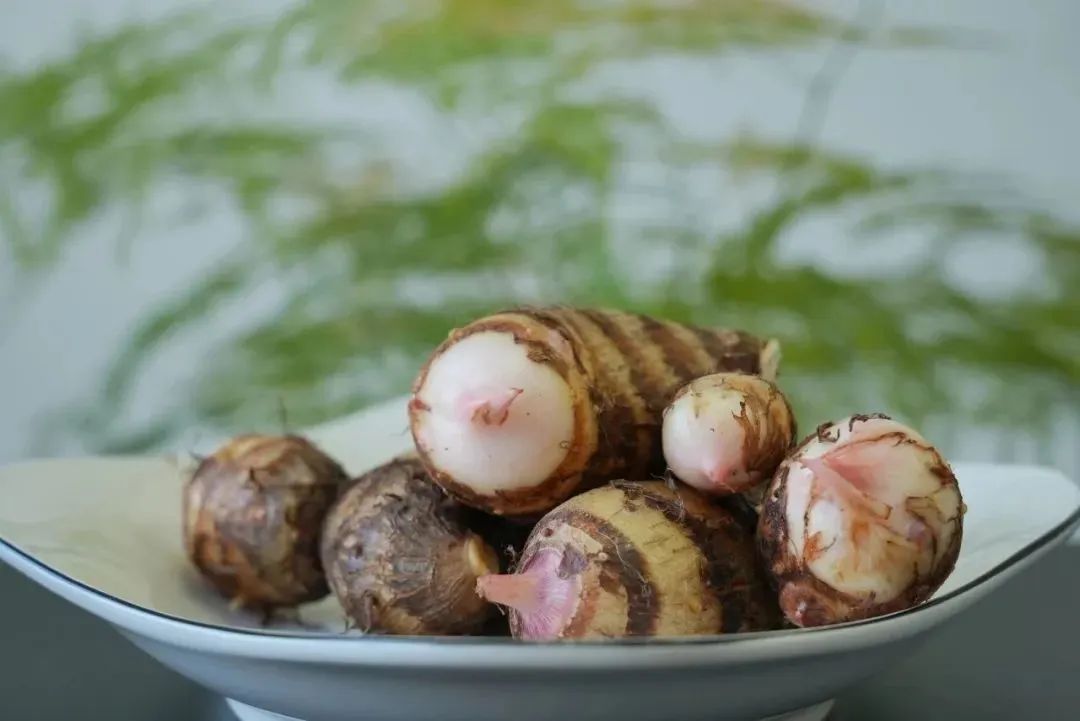 崇明香酥芋是红梗香酥芋的一种,因为顶芽泛着淡红色,所以有另一个名字——“红梗芋艿”。