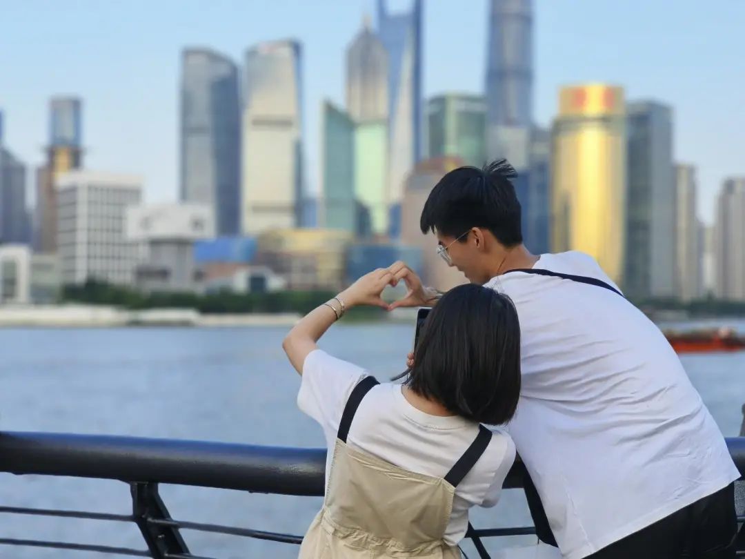 如今外滩防汛墙外由游人组成的“人墙”依然是一道美丽的人文风景线。虽然这里不再是约会的首选地,但是恋人们成双结对牵手漫步、观赏江景的浪漫依然长存。