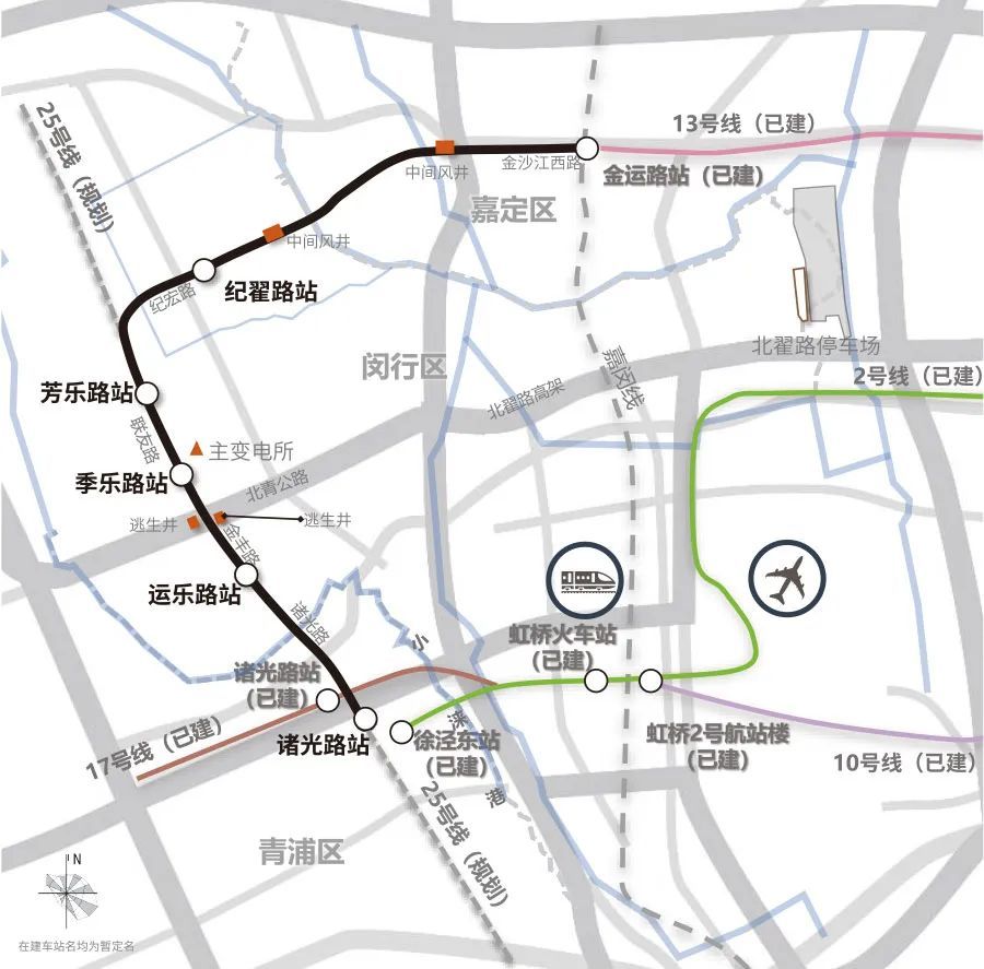 13号线西延伸段线设5座站点,分别为纪翟路站-芳乐路站-季乐路站一运乐路站一诸光路站。线路涉及闵行区(4站)和青浦区(1站),经过嘉定区江桥镇、闵行区华漕镇和青浦区徐泾镇。