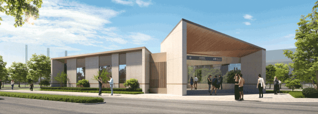 纪翟路站位于纪翟路与纪宏路交叉口,紧邻红卫河与马拉松环线赛道。站点周边以生态社区、电竞文创功能为主,作为市区进入前湾第一站,打造前湾地区标识与第一印象展示门户,服务国际高端人群与电竞新锐人群。