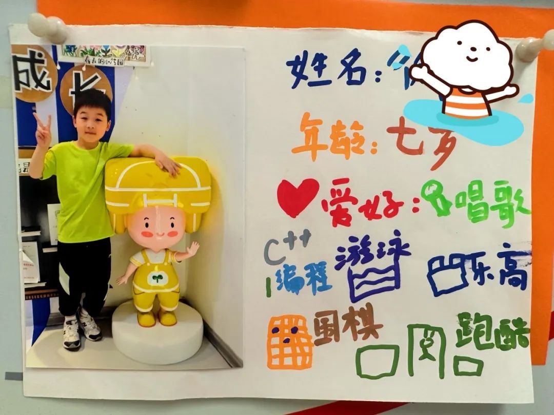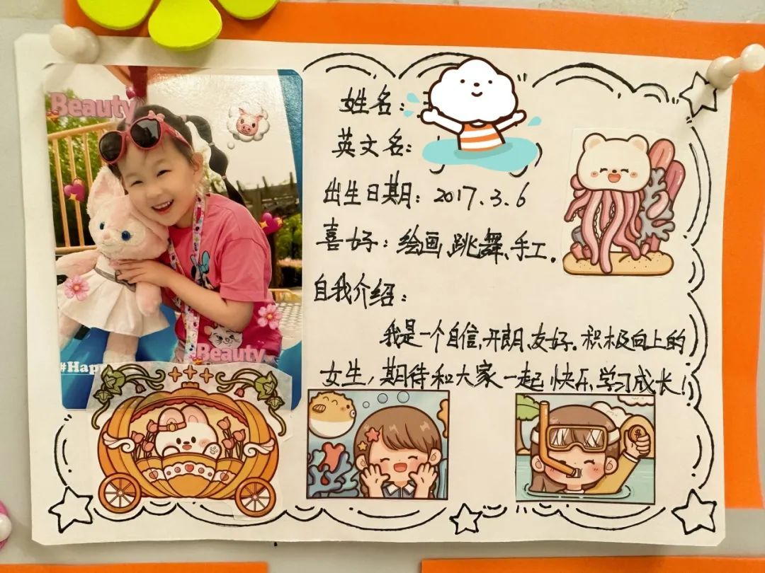 此外,任老师也向每位孩子收集了自我介绍,布置在教室后面。